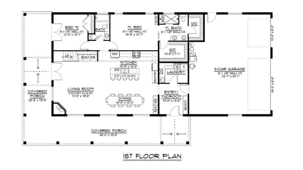 5 Bedrooms, 3.5 Bathrooms, 1 Floor, 2 Garages Barndominium House Plan