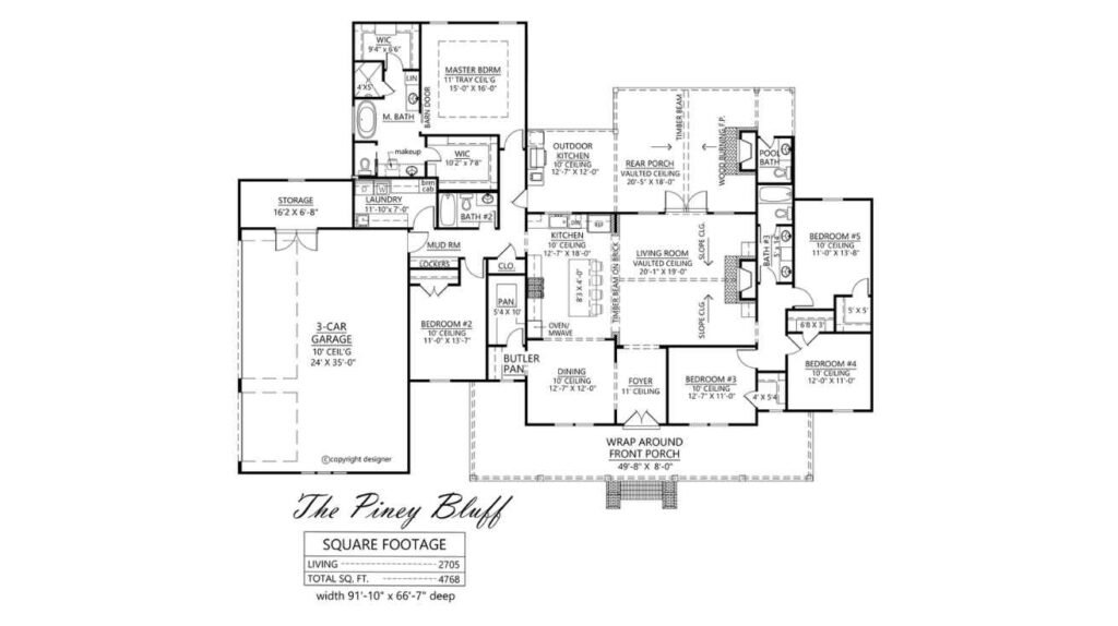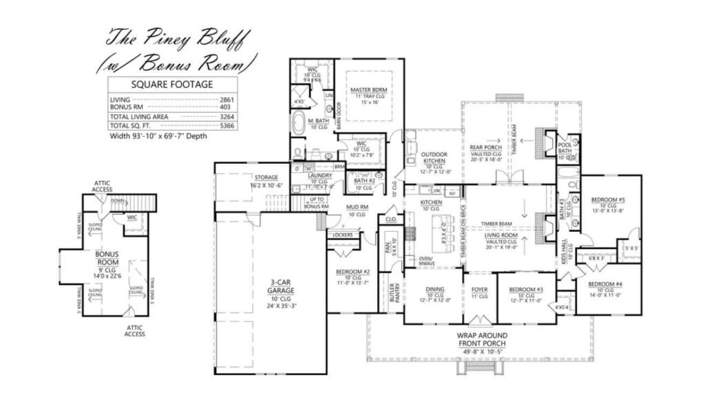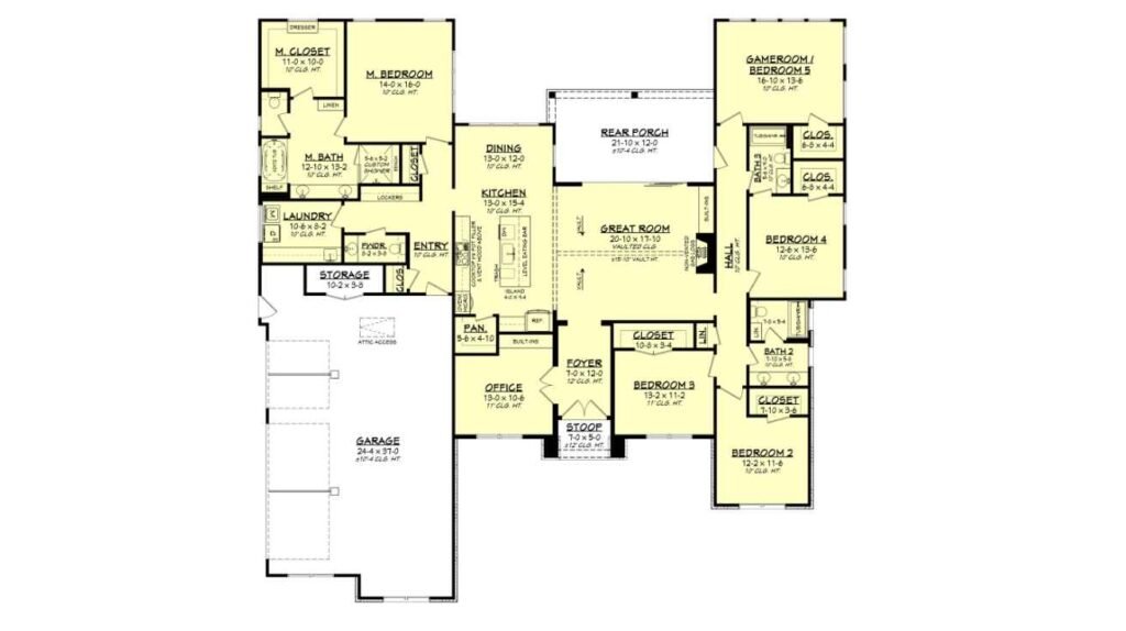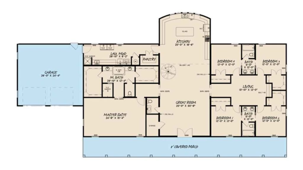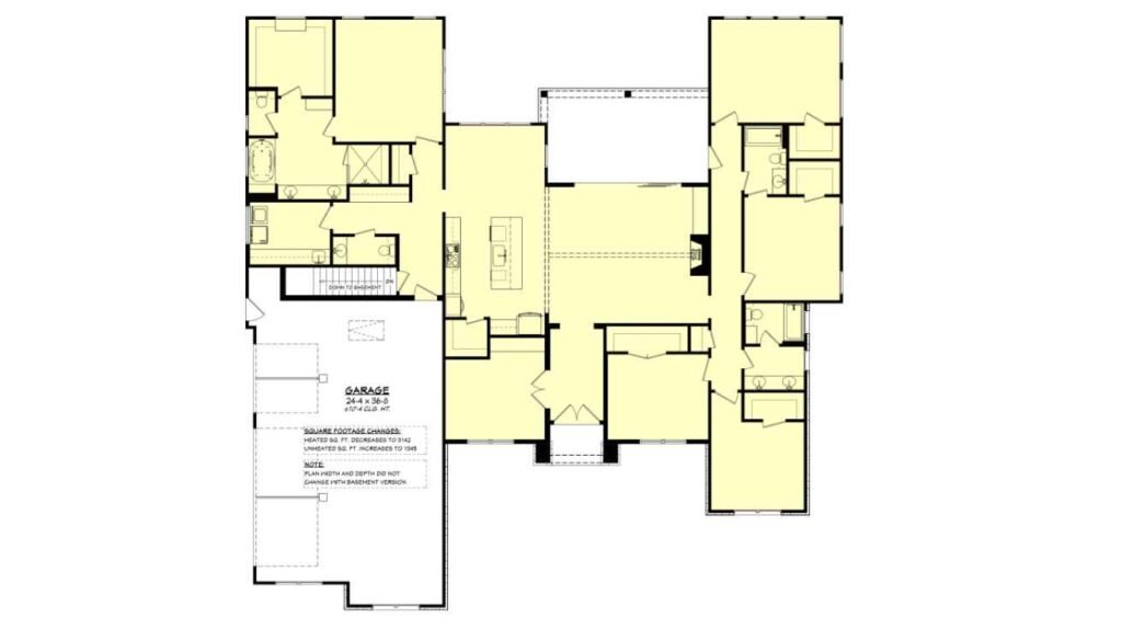 5 Bedrooms, 3.5 Bathrooms, 1 Floor, 3 Garages Farmhouse Floor Plan