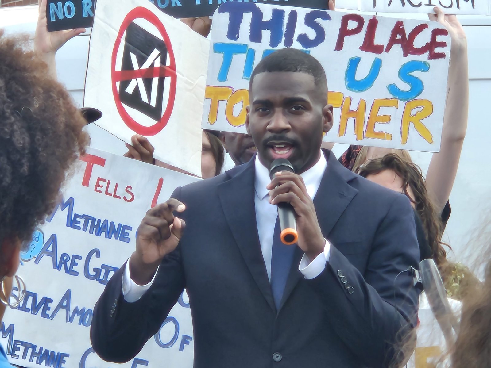 Keshaun Pearson, executive director of Memphis Community Against Pollution, speaks before the Shelby County Health Department town hall on April 25.
