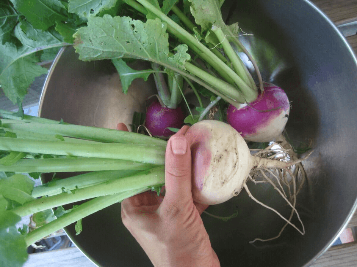 Harvesting turnips is as simple as pulling them out of the ground, washing them off, and getting them in the kitchen, pronto! There’s good food to make.