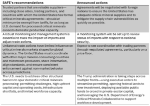 - Transparency and traceability mechanisms to ensure materials meet agreed standards, including potential price floors, and to prevent third countries from using minor transformation or transshipments through trading partners with which the United States has negotiated agreements to circumvent tariffs or evade other protective measures.Â