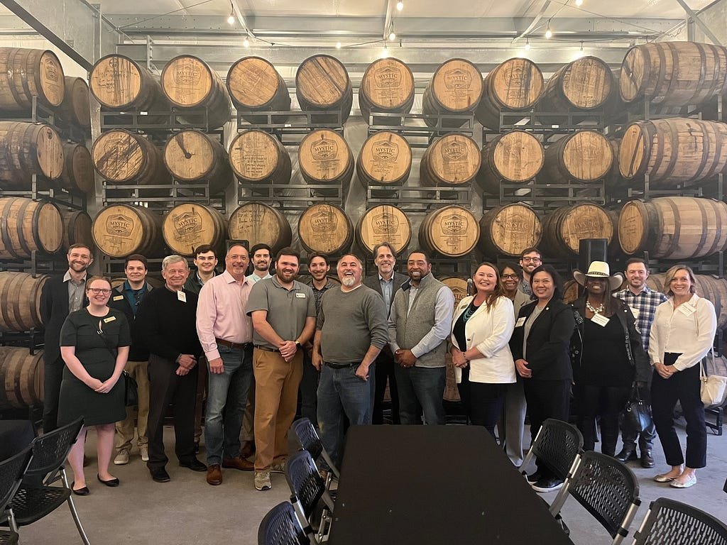 Our final stop was at Mystic Farm & Distillery, located just east of downtown Durham. While distilling might not immediately come to mind at the mention of clean energy and sustainability, Mystic is proof that even the world’s oldest industries can benefit from cleantech innovations. While the tour participants sampled some of Mystic’s award-winning whiskey, they learned about how Mystic has successfully integrated sustainability into its business model, with an onsite solar system providing much of their energy needs, a zero-waste production process, and use of local grain for their mash. And with plans to build off their success and substantially scale up their production in the years ahead, Mystic will provide only more good-paying job opportunities and greater tax revenue to the local community.