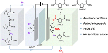 A chemical–electrochemical cascading strategy for the efficient synthesis of 2,5-furandicarboxylic acid and its methyl ester from 2-furoic acid and CO2