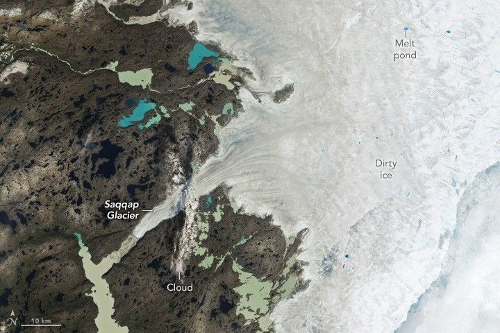 A moderately intense season of surface melting left part of the ice sheet dirty gray in summer 2025, but snowfall…