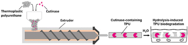 Cutinases were successfully incorporated into thermoplastic polyurethane (TPU) by melt extrusion (150–200 °C). Resulting biocomposite TPU demonstrated enhanced biodegradability, opening new possibilities for effective end-of-life PU waste management.