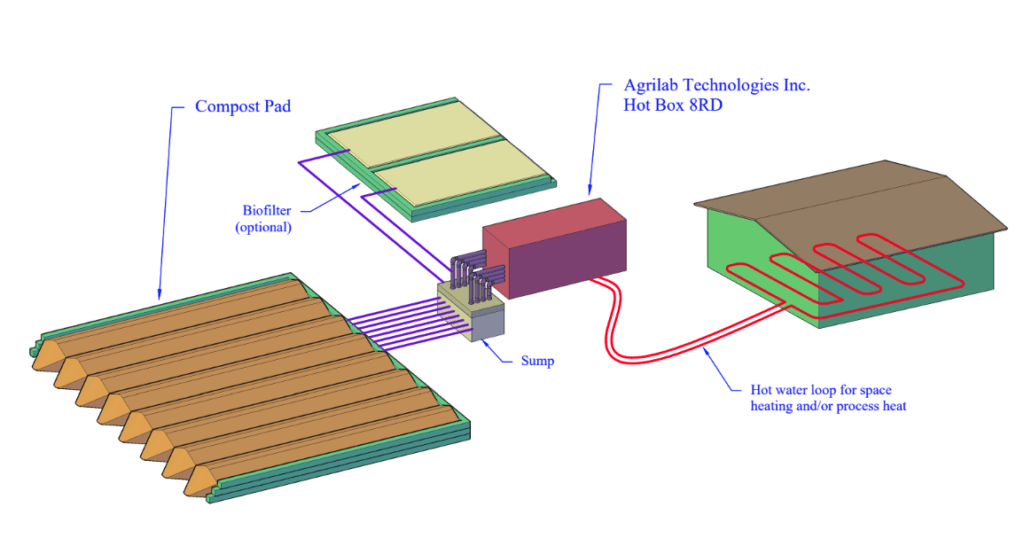Heat recovery is key to what sets Agrilab Technologies apart. The startup captures the thermal energy naturally generated by the composting process, then uses it to accelerate composting (especially in winter) or heat nearby buildings, including work rooms or greenhouses—saving even more money and emissions.