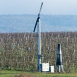 Heater and wind machine to protect grapes from frost in French vineyard. Image credit: istock/Cornutus