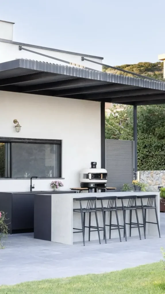 The sense of shelter makes the space feel like an outdoor room rather than an exposed area. This design encourages longer meals and more frequent use because the weather becomes less of a concern. With proper ventilation and durable materials, the structure remains fresh and functional over time. It creates a reliable setting for celebrations, family dinners, and quiet evenings, making outdoor cooking part of everyday life rather than an occasional activity.