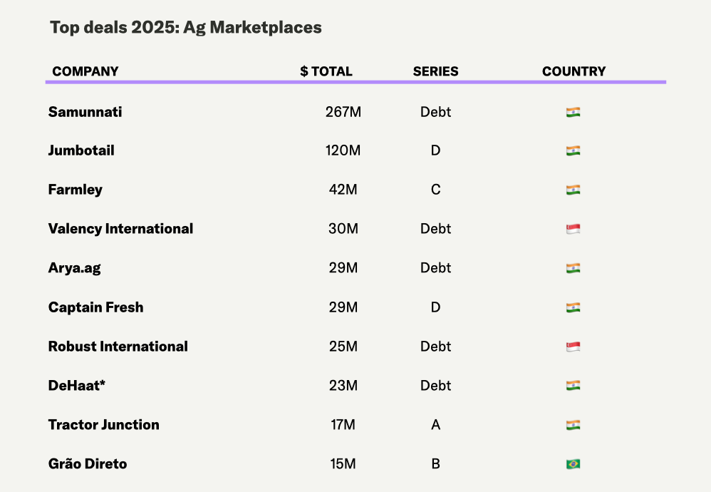 Why it matters: Two companies from India accounted for more than half the category’s funding, underscoring the country’s longtime lead in this area. Hundreds of millions of smallholder farmers in India seeking access to markets and credit are the backbone of the category, the bulk of which remains concentrated in emerging markets.