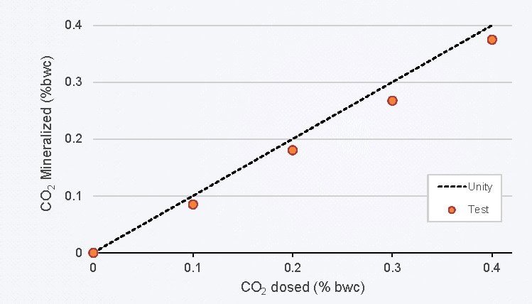 CarbonCure has worked with industry leaders and research institutions to conduct studies of its technologies, including the amount of CO2 uptake in concrete via carbon mineralization. Its most recent testing demonstrated a strong linear relationship between injected and mineralized CO2 with an average uptake of 90%.