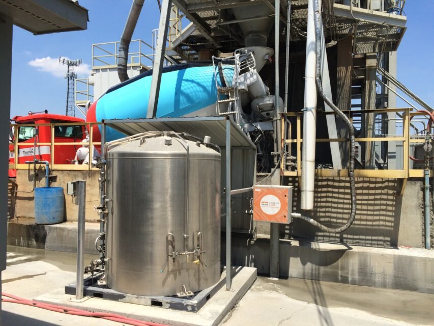 CarbonCure retrofits existing concrete plants with its technologies with minimal disruption. Field engineers simply bolt a system onto any dry or wet batch ready mix or precast plant configuration and CarbonCure’s software integrates seamlessly with existing batching software, administering the carbon dioxide (CO2) just like an admixture. The CO2 tank is installed in advance by a third party, and refilled by gas companies on a regular basis. CarbonCure engineers hook the equipment up to the CO2 tank and plant batching system in mere hours. In the future, this CO2 may be sourced from cement kilns or direct air capture projects; however, presently post-industrial CO2 supplies are abundantly available from established supply chains.
