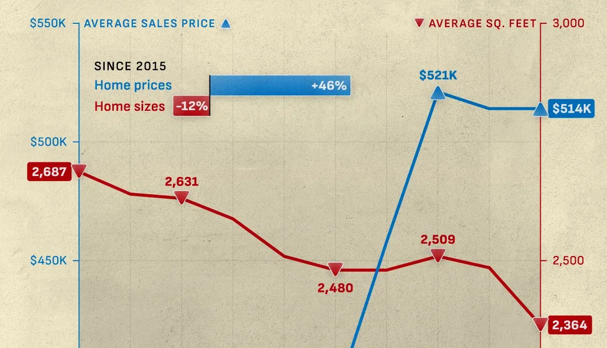 Since 2015, the average home size has shrunk by 323 square feet, with even sharper decreases in the South, at 374 square feet.