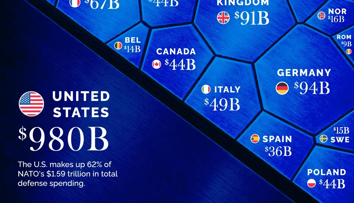 Outside Europe, Canada ($43.9 billion) and Türkiye ($32.6 billion) play key strategic roles within the alliance.