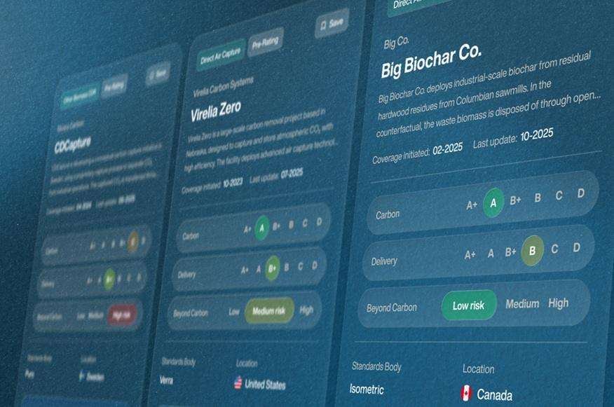 ClimeFi conducts due diligence on each carbon removal project against three core pillars, including Carbon Integrity, Delivery Risk, and Beyond Carbon considerations, assigning an Analyst Rating that provides a structured, comparable framework to support multi-year procurement decisions.