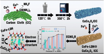 CuCo2O4 spinel oxide nanosheets grown on carbon cloth are covered by a dense layer of CoFe-LDH honeycomb. The prepared heterojunction showed high catalytic activity and efficiency to electrochemically convert nitrate pollutants to useful NH3.