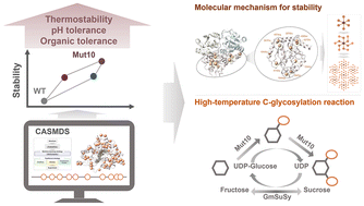 The CASMDS workflow is presented and applied to construct a hyperstable C-glycosyltransferase (CGT). The molecular mechanism underlying its stability is elucidated, and a high-temperature biosynthetic route for C-glycosides is established.