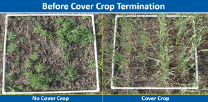 Net return was much lower in the cover crop treatment, primarily because of the cost of the seed. On the positive side, the cover crop did significantly reduce weed density, which likely lowered the amount of weed seed that would have otherwise entered the soil bank. However, the cost of integrating the cover crop greatly exceeded the benefits of improved weed control, with lower net returns recorded in all three years compared to chemical fallow.