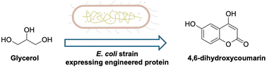 By combining protein engineering and synthetic biology strategies, the novel de novo biosynthesis of 4,6-dihydroxycoumarin from glycerol was realized in Escherichia coli for the first time.
