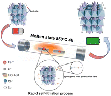 The dual eutectic salts (LiI-LiOH) construct an ionic polarization synergistic field, accelerating the self-lithiation process of spent lithium iron phosphate (S-LFP).