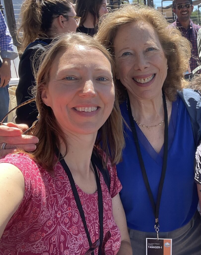 The authors, Debbie, RMI (right) and Marcia, High Tide Foundation (left) celebrating Carbon Mapper’s successful launch.