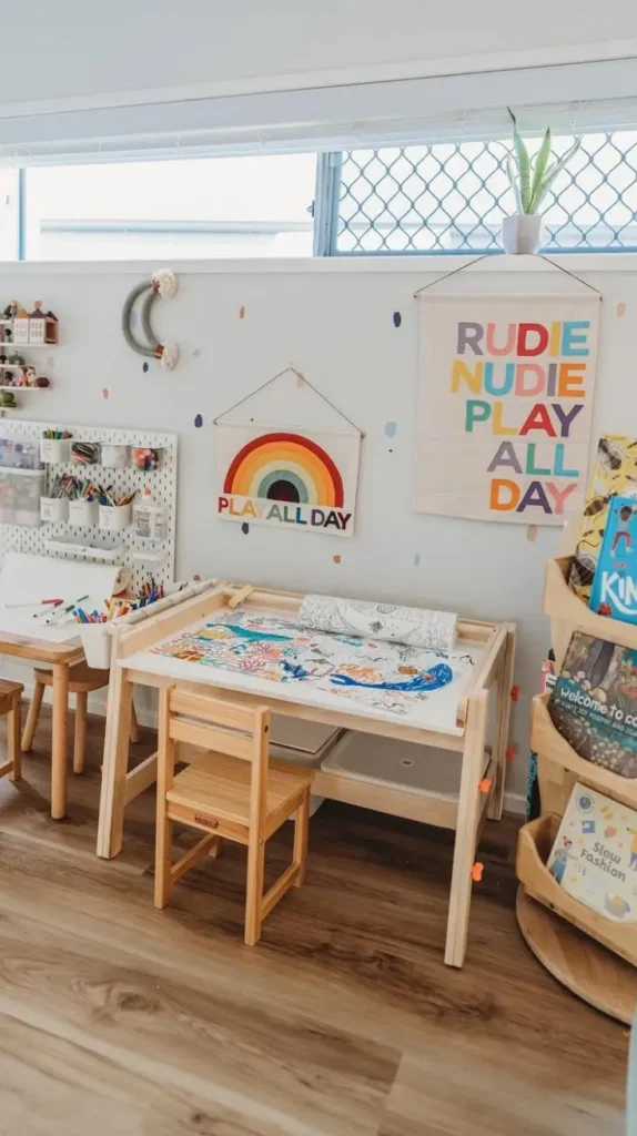A craft room for kids is where imagination takes flight. Bright colors, washable surfaces, and safe storage make it both fun and functional. Low tables, colorful bins, and open shelves keep everything accessible for little hands.