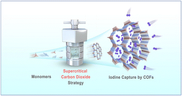 Covalent organic frameworks (COFs) synthesized in supercritical CO2 show crystallinity and porosity similar to or better than those of solvothermal products, with much less solvent waste, shorter reaction time, and good iodine adsorption performance.