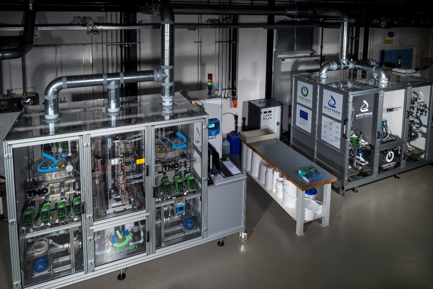 TNO’s modular pilot systems allow for rapid iteration and optimization. Starting from flow cells with 5–100 cm² catalyst surface areas, processes are scaled up to skids with 1000 cm² and even 1 m² electrodes. These systems can produce few tons of product per year under continuous operation, with integrated monitoring and downstream processing to ensure product quality and purity.