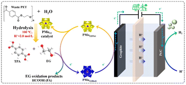 We achieved the conversion of waste PET into TPA and hydrogen energy under mildly acidic conditions (100 °C; acid concentration <2.5 mol L−1).