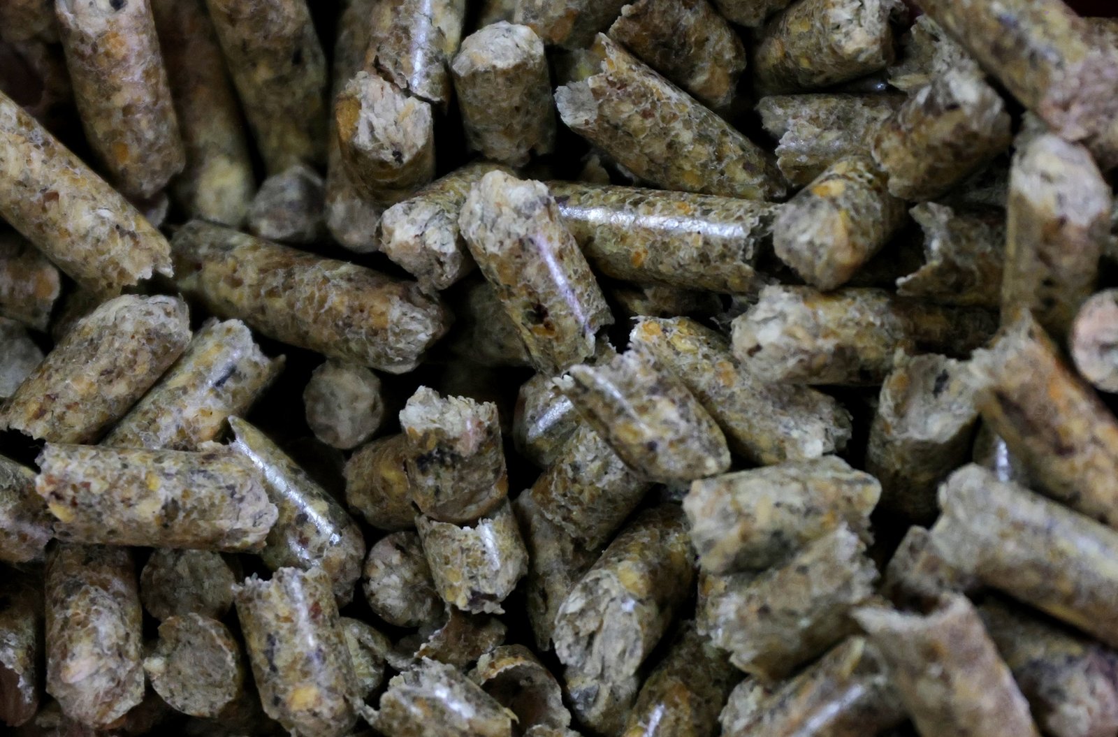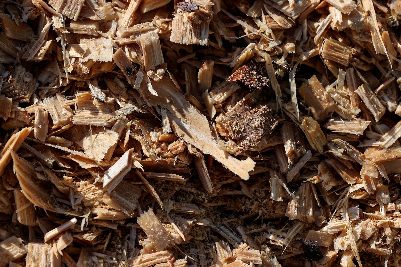 a pile of wood pellets as seen through a gap in tree branches