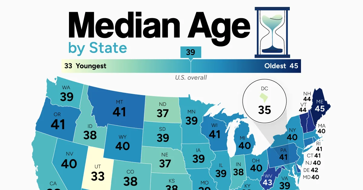 Mapped: The Median Age of Every U.S. State
