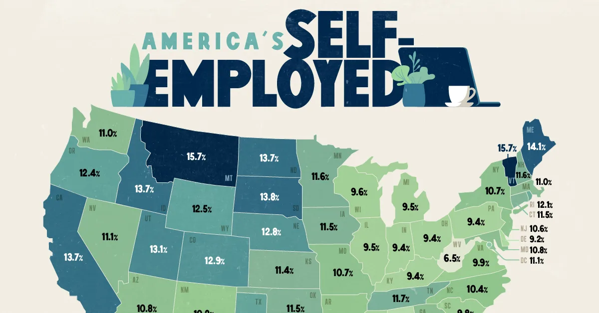 Mapped: Where Self-Employment Is Most Common Across U.S. States