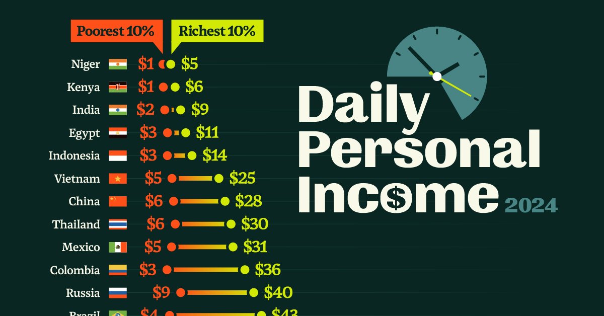 Ranked: Daily Incomes of the Richest and Poorest in 25 Countries