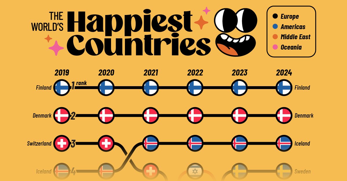 Ranked: The World’s 10 Happiest Countries (2019–2024)