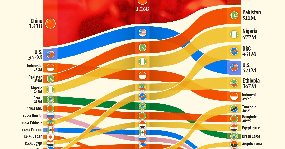 Ranked: The World’s Most Populous Countries (2025-2100P)