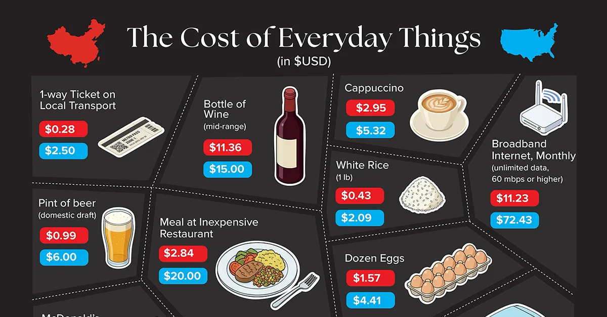 Visualized: The Cost of Everyday Things in China vs. the U.S.