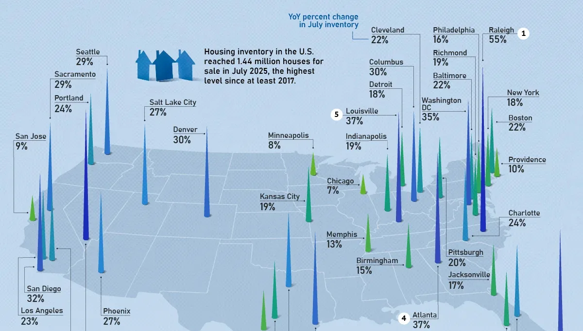 Mapped: Where Housing Inventory is Rising in U.S. Cities