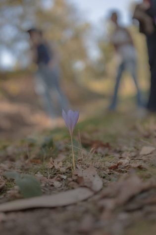 As the demand shifts, the landscape follows. Walking the sun-dappled path beneath a canopy of green, where the horse-drawn carts once trundled, eucalyptus remains the most common species. But in pockets, the team here have removed it, allowing the diversity of native life to respond. In former quarries, natural shallow pools have formed, home to salamanders, frogs and newts that are efficient pest controllers. Wild saffron flower in autumn. Stag beetles, dependent on native trees, lay their eggs in protected soil. Beehives dot clearings, their health closely monitored.