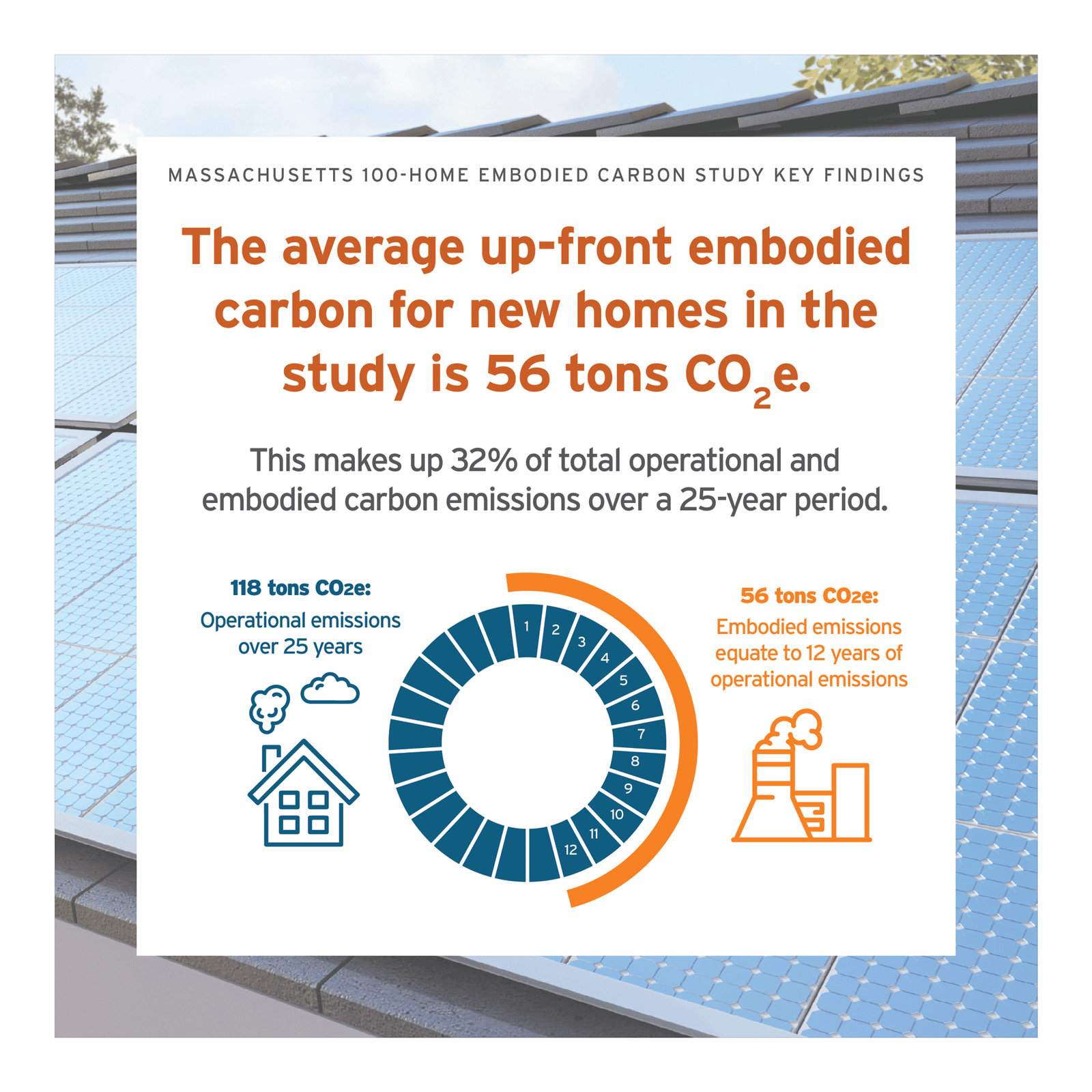 1. The average new home in Massachusetts is responsible for 56 tons of embodied carbon emissions (ECE), measured as carbon dioxide equivalent (CO2e).
