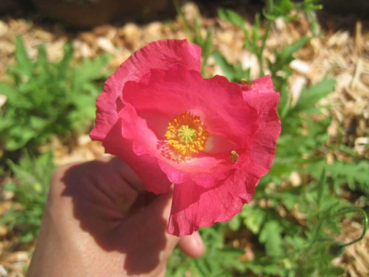 A surprisingly pink poppy emerged from my Corn Poppy planting. One of the many surprises that come from saving your own seeds. Photo courtesy of Wren Everett.