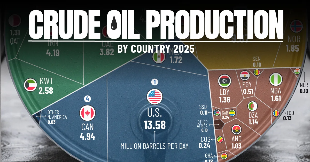 Visualization of global crude oil production by country in 2025.