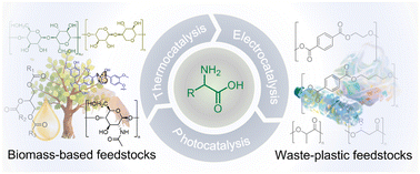 This review outlines recent advances in synthesis of amino acids from biomass-based and plastic feedstocks via heterogeneous catalysis, summarizes catalytic mechanisms, material design, and performance, and discusses challenges and opportunities.