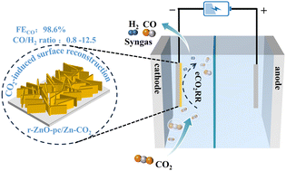 The CO2-induced r-ZnO-pc/Zn-CO2 electrode demonstrated exceptional performance for the eCO2RR-to-syngas conversion, delivering a peak FECO of 98.6% and a tunable syngas ratio of 0.8 to 12.5.