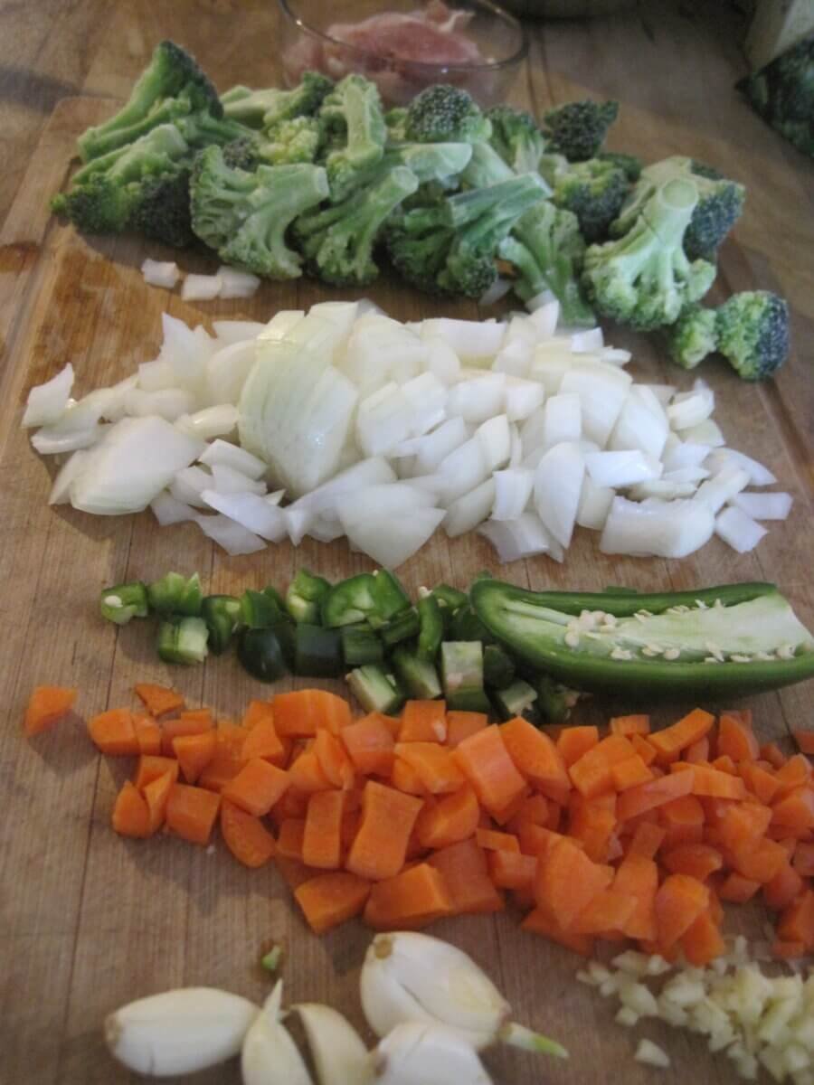 - Add a tablespoon of oil to the pan, and stir-fry all the vegetables until tender (or stir-fry all the vegetables aside from the broccoli, and steam the broccoli separately).