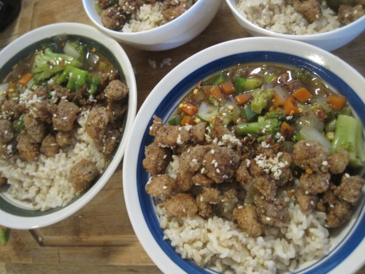 All that said, I’d like to share a few of our family’s easy recipes and techniques for delicious, healthful meals that can feed four (or more) people with tiny amounts of meat. Whether you’re on a tight budget and concerned about the cost of meat, want to know how to make it stretch, are trying to eat less meat, or likewise see meat as a precious ingredient, I hope this article helps open doors to new meals.