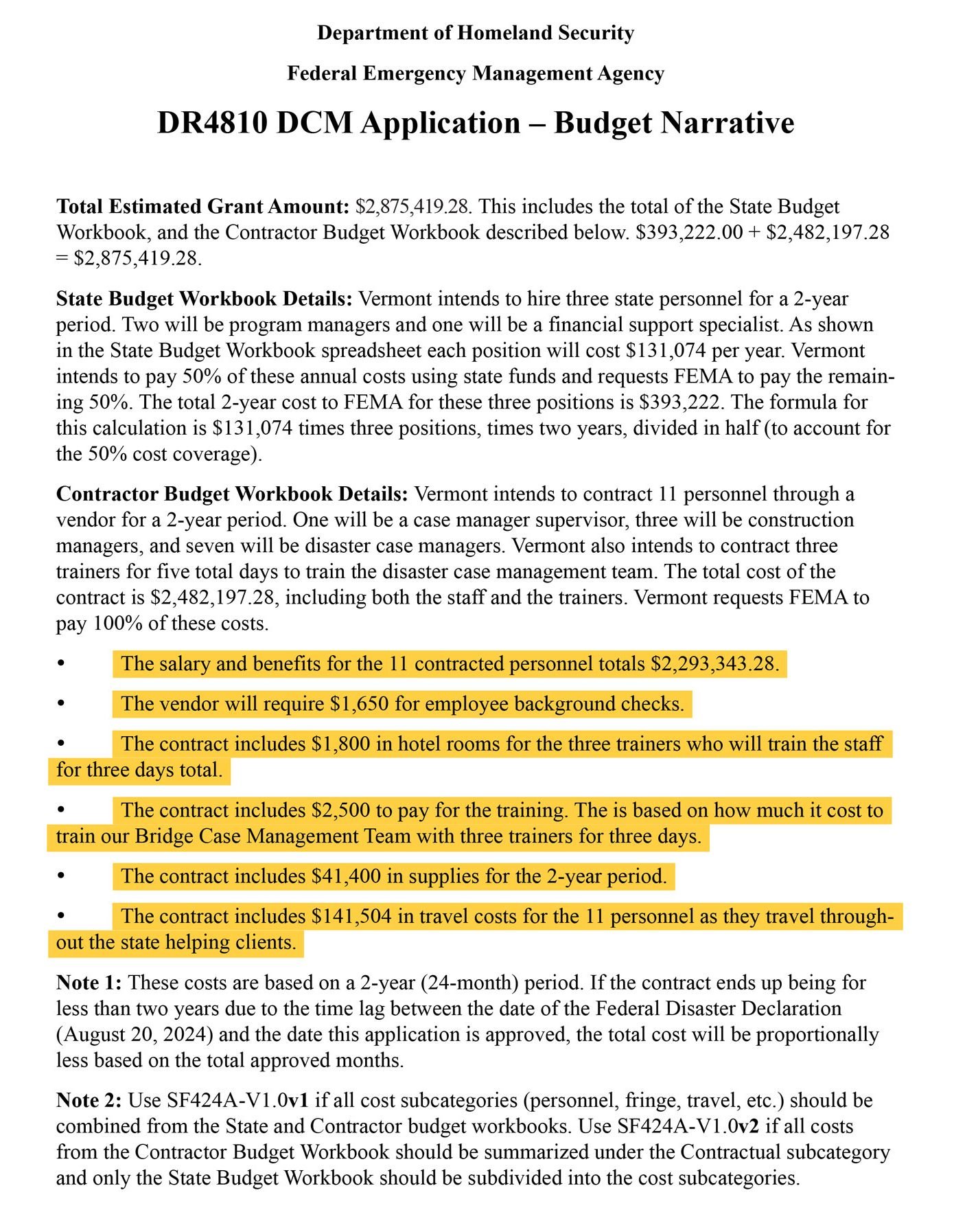 In July 2024, Vermont was hit by 100-year flooding for the second summer in a row. Among the aid that the Federal Emergency Management Agency approved was a $2.9 million grant to hire an 11-person disaster case management team to help victims navigate their FEMA applications, find other available resources, and rebuild their homes. The money was supposed to last two years but was on pace to be gone far sooner. The morning after his first email, Gosselin, who is the emergency management director at the Vermont Agency of Human Services, sent another message detailing the likely source of the unexpected financial drain. The corporate contractor Vermont used to hire the team, he calculated, was actually billing nearly half of the budget for its own staff.
