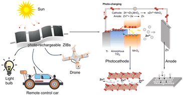 This study proposes an interface engineering strategy by constructing an amorphous TiO2 layer on layered MnO2 to enhance charge separation and Zn2+ kinetics, yielding a photo-rechargeable battery with a photo-conversion efficiency of 1.5%.