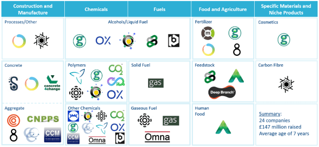 However, while there are plenty of promising innovators in the UK, there is a larger pool of global companies and investors that can also provide steer as to what categories of utilisation have already garnered the most interest. From a compiled database of ∼80 global innovators (admittedly with a large focus on the western world), the following number of companies were found to be targeting each sector: