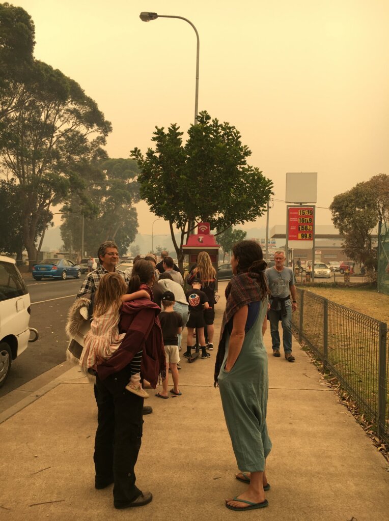 The line for the Narooma public phone during the 2020 bushfires. Image: Telstra