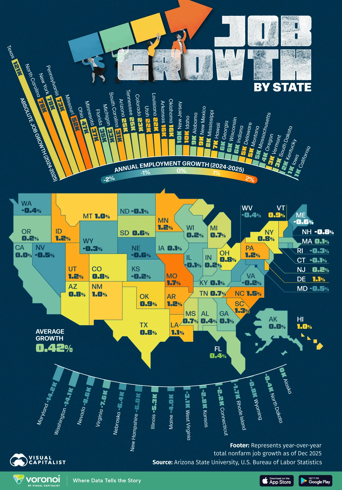 Mapped: Job Growth in Every U.S. State in 2025