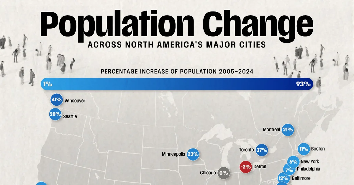 Mapped: Population Change in North American Cities (2005-2024)